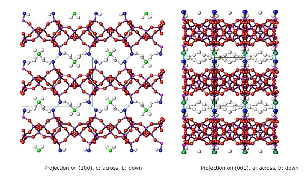 | Chemical composition per unit cell | (C8H20N)2 [Si18O36(OH)2] ∙ x H2O |