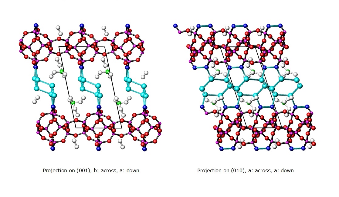 | Chemical composition per unit cell | (C6H16N)2 [Si10O20(OH)2] ∙ 6 H2O |